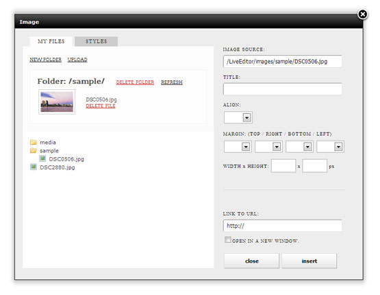 The package contains a sample & ready to use File Browser. If enabled, can be used directly from Image & Link dialog.